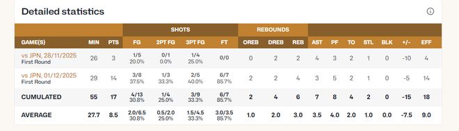 大家知道陈盈骏在此前的男篮世预赛是什么数据吗?场均27.7分钟,拿8.5分3.5助攻3篮板1抢断,命中率30.8%,三分命中率33.3%。